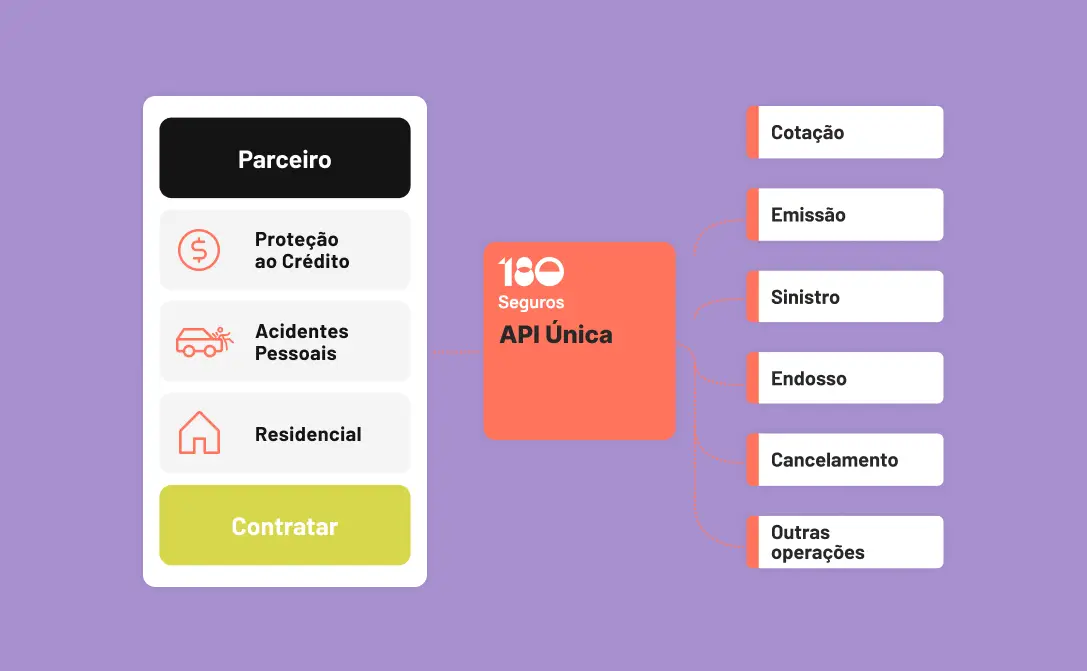 Em meio a tantos processos burocráticos, vimos uma oportunidade de simplificar e, com isso, reduzir significativamente o trabalho de desenvolvimento necessário por parte do parceiro, abstraindo a complexidade da cadeia de seguros.
